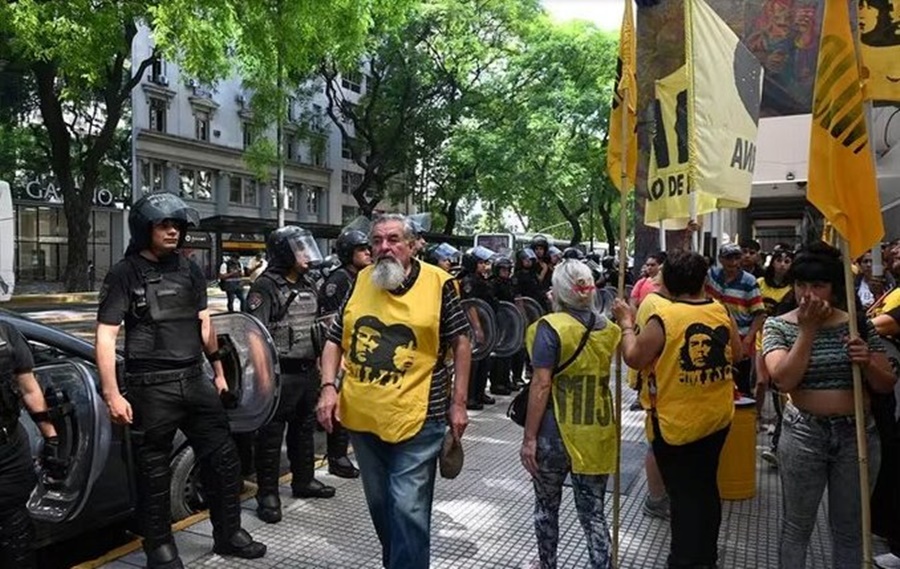 Dirigentes y militantes del Movimiento Independiente de Jubilados y Desocupados (MIJD) se concentran hoy frente al Ministerio de Trabajo. La protesta, la primera en la gestión de Javier Milei como presidente y que encabeza el referente sindical Raúl Castells, se desarrolla sin cortar el tránsito, sobre la vereda de la avenida Leandro N. Alem al 600, y con presencia policial.