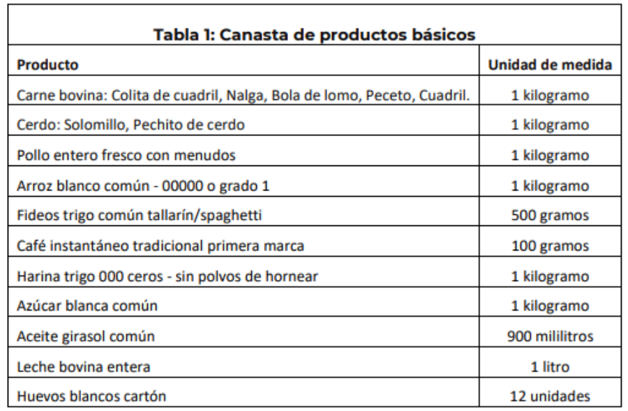 Para elaborar este estudio, Lucero tomó como base una canasta con 11 alimentos básicos: carne vacuna, cerdo, pollo, arroz, fideos, café, harina, azúcar, aceite de girasol, leche y huevos.