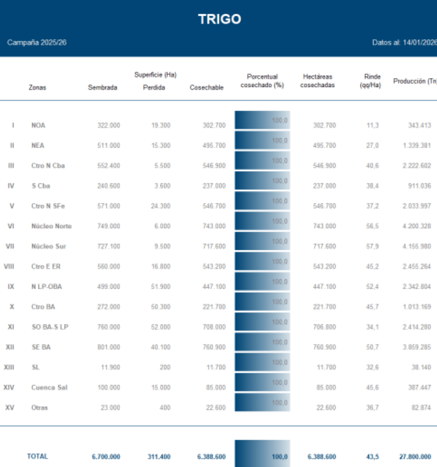 Si al comienzo de la campaña de trigo 2025/26 alguien hubiera pronosticado que la cosecha llegaría a bordear los 28 millones de toneladas, probablemente hubiera sido tildado de loco.