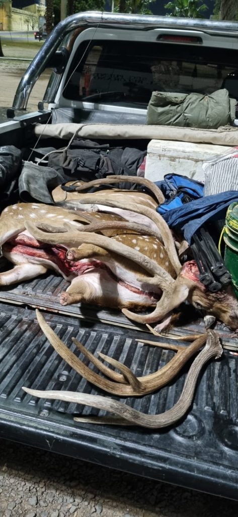 Asimismo, se hallaron 3 carabinas, 1 escopeta y 69 municiones de distintos calibres, elementos que fueron utilizados para la actividad vedada.