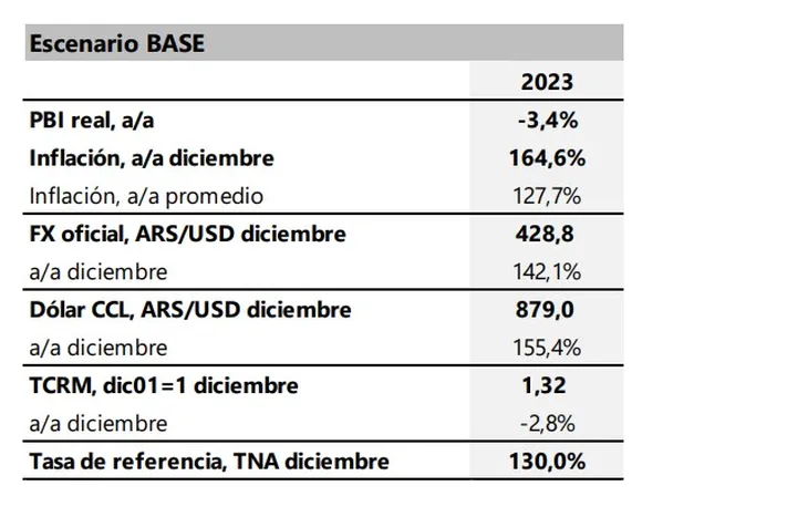 El siguiente cuadro resume las principales variables de nuestro escenario base al 10 Diciembre de 2023. "No descartamos nuevas correcciones con el correr de los días y la evolución de esta coyuntura volátil", explicaron.