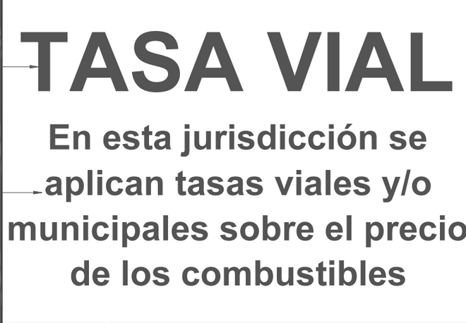 Las estaciones de servicio deberán poner un cartel con la siguiente leyenda:“En esta jurisdicción se aplican tasas viales y/o municipales sobre el precio de los combustibles. Para más información, podrá consultar la página web de la Secretaría de Energía”.