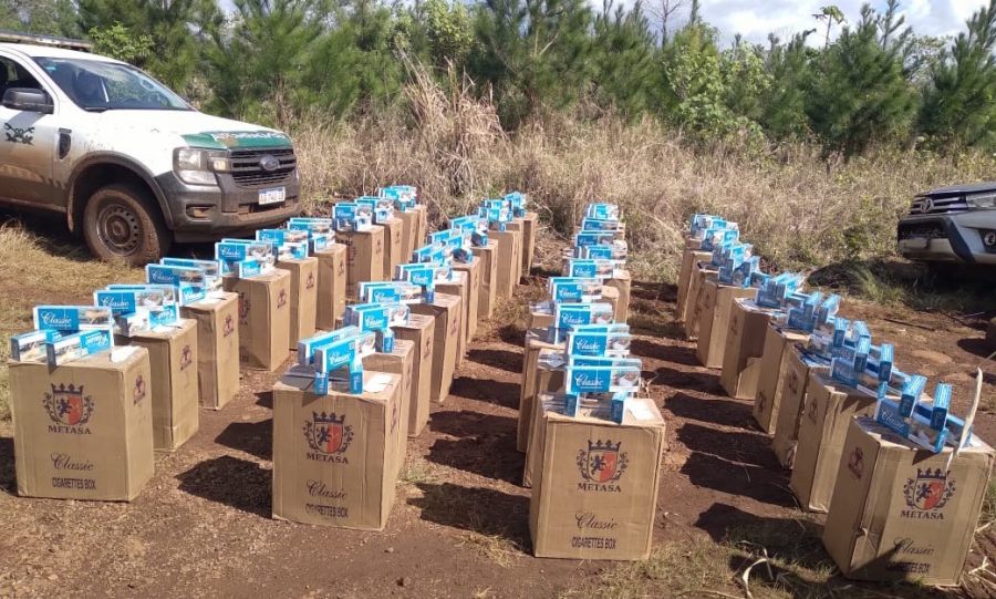 Dentro del habitáculo y del compartimiento de carga se encontraban acondicionadas 20 cajas de cartón que contenían 20.000 paquetes de cigarrillos de origen extranjero.