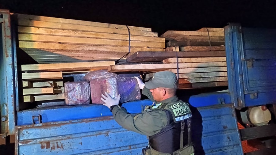 El transporte provenía desde la localidad de Capioví, en Misiones, y tenía como destino final la provincia de Buenos Aires. Conforme se llevó a cabo la inspección física del rodado con el apoyo del can detector de narcóticos “Astra”, el mismo reaccionó de manera exaltada como lo hace ante la presencia de estupefacientes, señalando la carga de tablones de madera que se encontraba en el semirremolque.