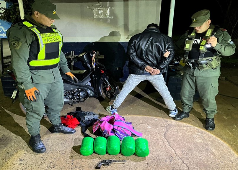 Personal perteneciente a la Sección “Jardín América”, dependiente del Escuadrón 11 “San Ignacio” de Gendarmería Nacional en la provincia de Misiones se encontraban llevando a cabo Actividades de Prevención Vial y Control sobre el kilómetro Nº 1.375 de la Ruta Nacional Nº 12, a la altura del peaje Santa Ana, momentos en los que detuvieron la marcha de un motovehículo al mando de una persona de sexo masculino.