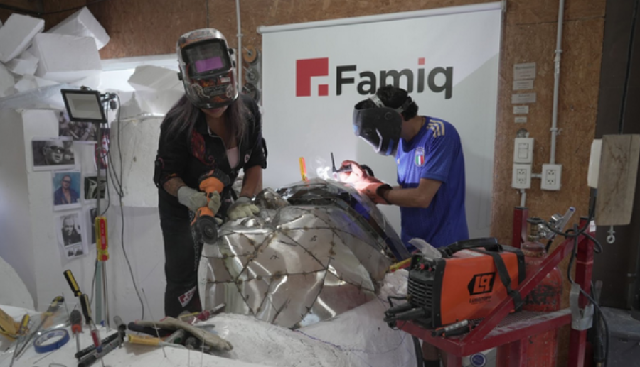 El desarrollo de la obra se apoyó en el trabajo conjunto de distintos actores. Se destaca la colaboración técnica y creativa del escultor Mauro De Giuseppe, el apoyo de las empresas Famiq y Lüsqtoff, y la gestión general del proyecto a cargo de Leo Kite, con el acompañamiento de We Represent Art.