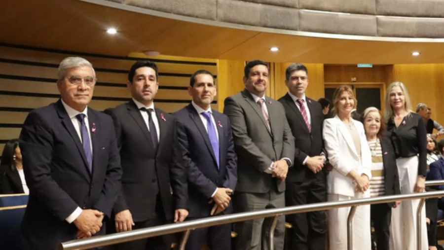 Miembros del STJ en la Legislatura: Cristian Marcelo Benítez; Froilán Zarza; Roberto Rubén Uset; Juan Manuel Díaz; Ramona Beatriz Velázquez, Cristina Irene Leiva y el Procurador de la Provincia, Carlos Jorge Giménez.