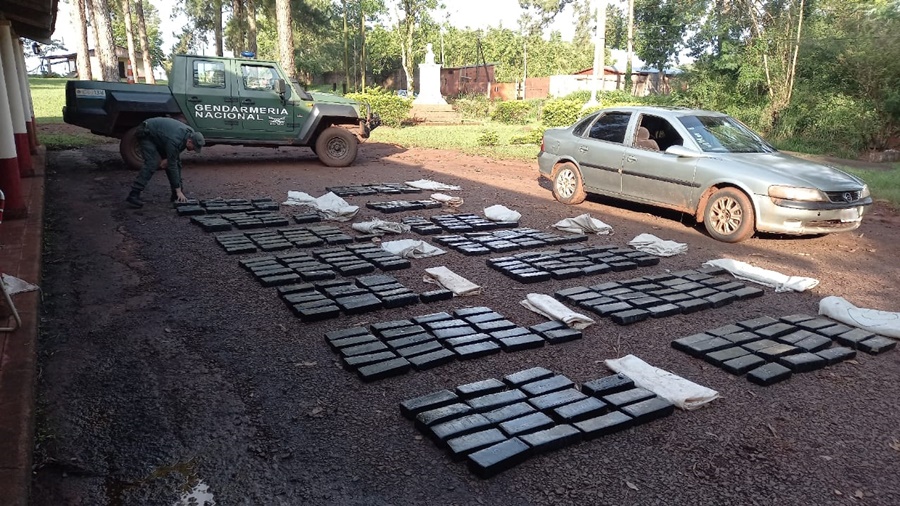 Alertado por la presencia de los uniformados, el conductor del vehículo acelera en dirección a la arteria nacional. Ante tal situación se solicitó el apoyo de las patrullas que se encontraban desplegadas en las cercanías. Momentos más tarde el rodado es hallado sin ocupantes sobre la banquina de la Ruta Nacional, hecho que motivó la ejecución de tareas de rastrillaje sobre las zonas circundantes, sin obtener resultados sobre la presencia de la persona evadida. } Anoticiados de los pormenores, el Juzgado Federal y la Fiscalía Federal de la ciudad de Oberá orientaron que, ante la presencia de testigos se inspeccione el automóvil, dentro del cual eran transportados 274 paquetes rectangulares distribuidos en 14 bultos envueltos en bolsas de arpillera. Los paquetes contenían una sustancia vegetal prensada de olor penetrante, similar al de la marihuana, cuyas muestras fueron sometidas a test químicos de campo que arrojaron resultado cromáticamente positivo para “Cannabis Sativa”. Finalizadas las tareas de pesaje, la balanza atestiguó 280,620 kilos.