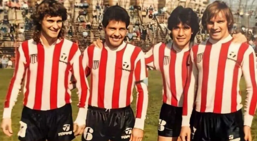Russo, en sus tiempos como jugador de Estudiantes, junto a Insúa, Trobbiani y Saralegui. (@EdelpOficial)
