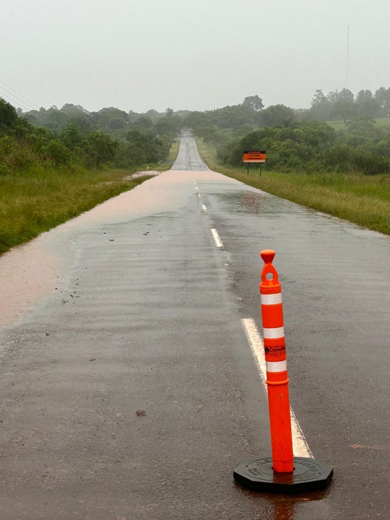 Esto se da a 150 metros de la estación de servicio de bandera nacional en el Mnicipio misionero de Apóstoles, el lugar está señalizado y se solicita circular con cuidado por la zona, ante las inclemencias climáticas.