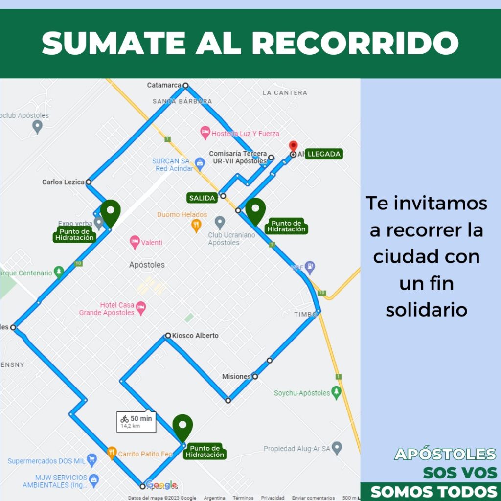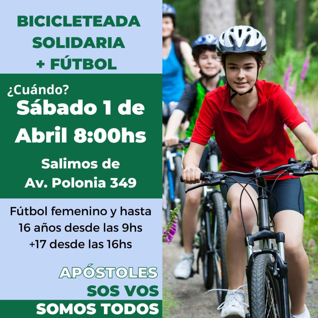 Continúa el comunicado, “es por esto que queremos invitar a todos los vecinos a una bicicleteada solidaria + fútbol el sábado 1° de Abril a las 8,00 horas, salimos de Avenida Polonia 349 y vamos a realizar un recorrido por fuera de los límites de las cuatro avenidas para ver una parte de Apóstoles que no todos conocen”.