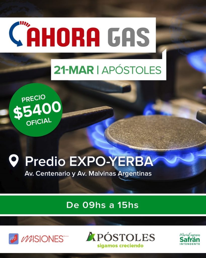 Apóstoles: El Programa Provincial Ahora Gas estará el próximo jueves 21 de Marzo, la carga de garrafa de 10 kilos al precio de 5.400 pesos
