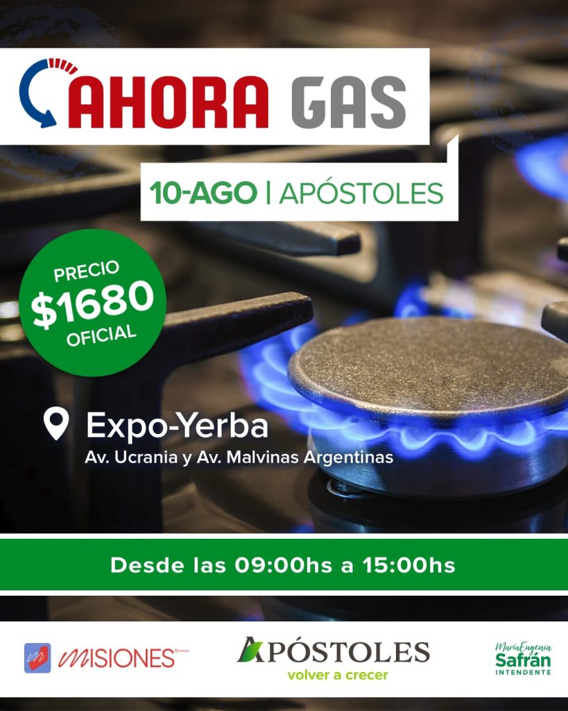 Apóstoles: El Programa Provincial Ahora Gas estará en el predio de la Expo Yerba el jueves 10 de Agosto