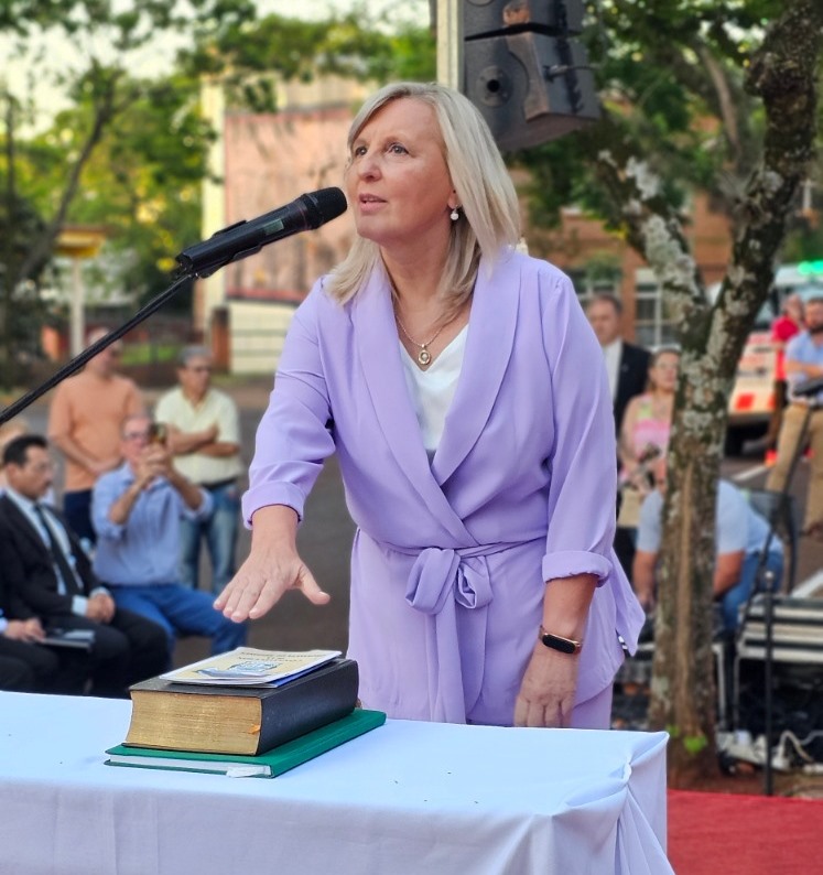 En la tarde del día domingo, frente al Edificio Municipal, asumió su segundo mandato consecutivo, la Intendente de la ciudad misionera de Apóstoles, María Eugenia Safrán, que en las elecciones pasadas de Mayo obtuvo la reelección por amplio margen de votos. De esta manera, Safrán continuará al frente del municipio hasta Diciembre del año 2027.