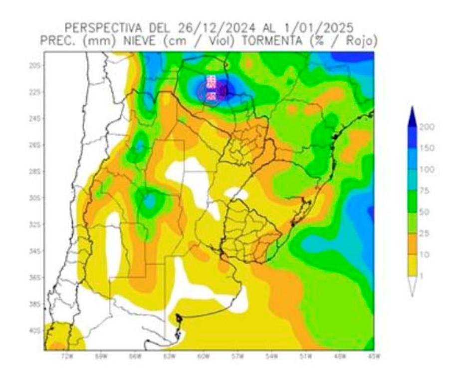 Desde el día 26 de diciembre el informe de perspectivas agroclimáticas semanal que elabora semanalmente la Bolsa de Cereales de Buenos Aires señala que se completará el paso del frente de tormenta, que hizo su entrada en los días precedentes, produciendo algunas lluvias, mientras los vientos del sur, que acompañaron su paso, causarán temperaturas mínimas bajo lo normal en la mayor parte del área agrícola.