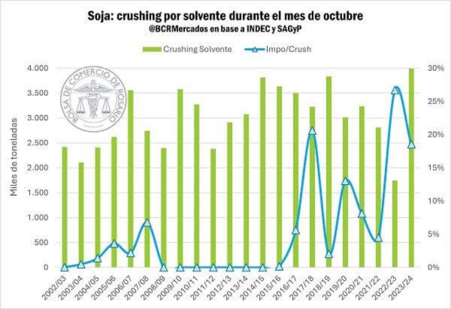 En este escenario, otro dato que sobresale es la importación de soja, que permite sostener esta dinámica.