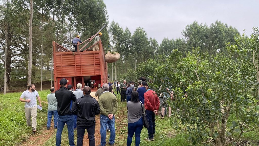 Las actividades comenzaron con la distribución de los asistentes en varios grupos que -bajo la coordinación de los técnicos del SEY- pudieron observar la cosecha de rama madura con tijeras electrónicas, el uso de las quebradoras automáticas, los carritos de arrastre, el pesaje y la carga de la hoja verde a con guinches, para su transporte a granel hacia los secaderos. Poco después se realizó una demostración de la aplicación de un compost elaborado a partir de las deposiciones del ganado vacuno que es criado en el Establecimiento De Coulon.