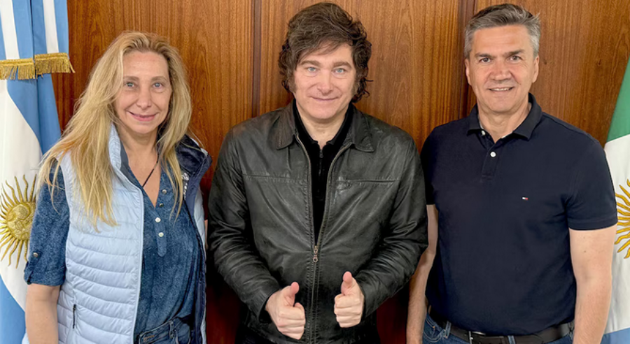 Los hermanos Karina y Javier Milei y el Gobernador chaqueño Leandro Zdero