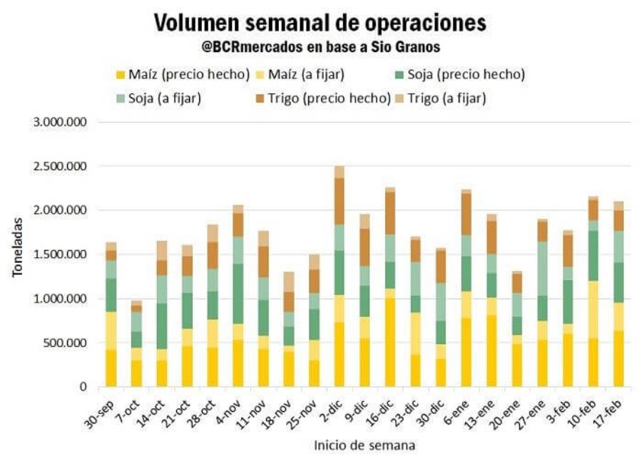 En concreto, tomando como referencia los datos de la plataforma Sio Granos, desde la oficialización de la medida el volumen promedio negociado semanalmente de trigo, soja y maíz (considerando operaciones a precio hecho y a fijar) fue de 1,98 millones de toneladas (Mt), un 8,5% más que en el promedio de las 10 semanas previas.