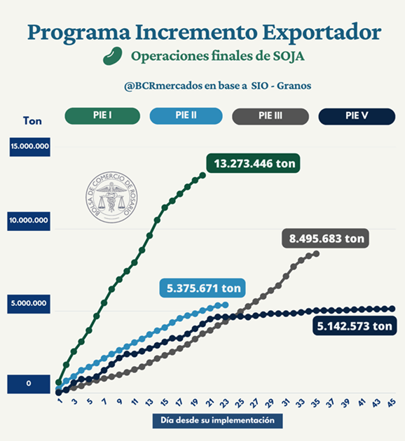 De las 5,1 millones de toneladas de soja operadas en la cuarta edición del PIE, el 90% de la mercadería correspondió al primer tramo del programa, mientras que el 10% restante se operó en el período de prórroga.