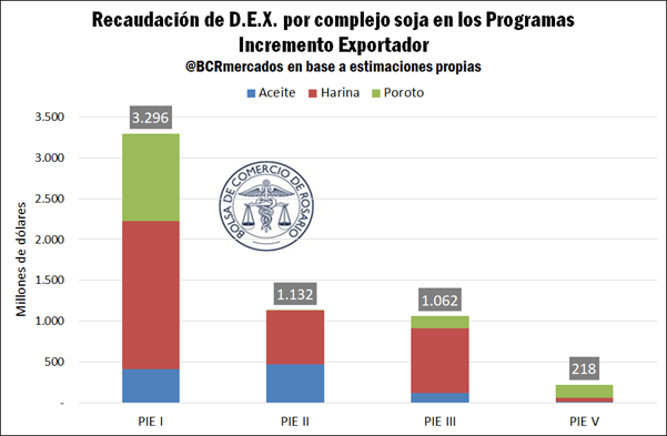 En todos los casos, la mayor tracción en el ingreso de divisas se generó a partir de la harina de soja, situación que fue más evidente en la primera edición del programa.