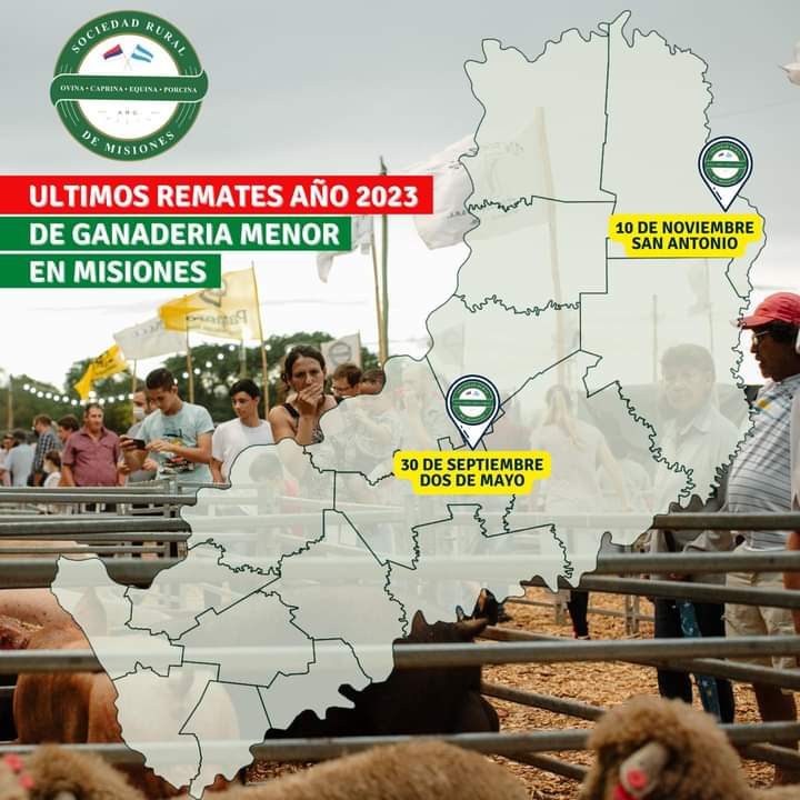El próximo sábado 30 de Septiembre se realizará en el Municipio misionero de Dos de Mayo el Tercer Remate de la Sociedad Rural Ovina Caprina Equina y Porcina de la Provincia de Misiones (SROCEPM).