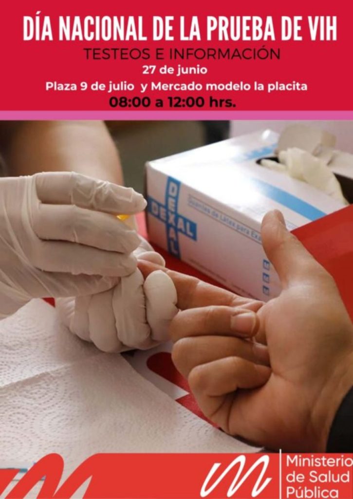 En el Día Nacional de la Prueba de VIH que se conmemora cada 27 de Junio, se estará realizando testeos rápidos de forma gratuita, voluntaria y confidencial en la ciudad misionera de Posadas, se realizarán en la Plaza 9 de Julio y en el Mercado Modelo “La Placita”, de 8,00 a 12,00 horas.