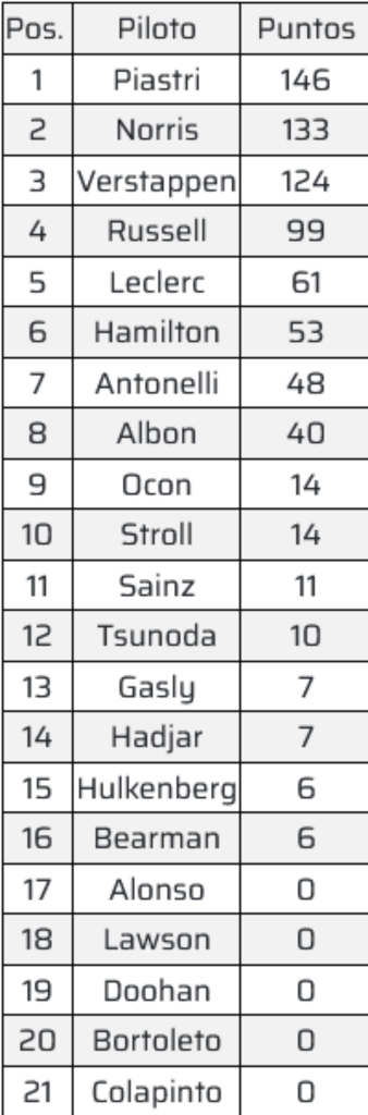Así está el campeonato de pilotos: