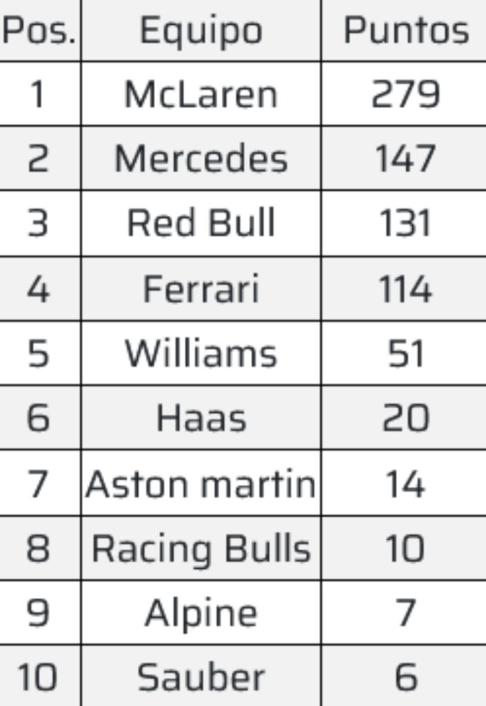 Así está el campeonato de constructores:
