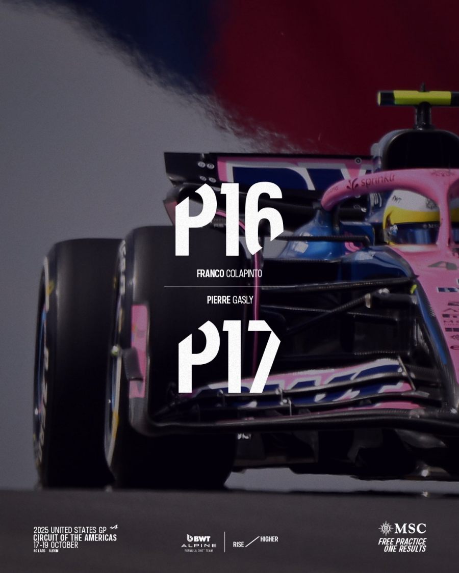 En una tarde calurosa (la temperatura ambiente orilló los 30°C), se inició la actividad del Gran Premio Estados Unidos en el circuito texano de Austin y allí el argentino Franco Colapinto completó su labor con el Alpine A525, en donde giró con el setup que desarrollaron los ingenieros del equipo de Enstone para afrontar la única sesión de practicas en la pista de 5.513 metros.