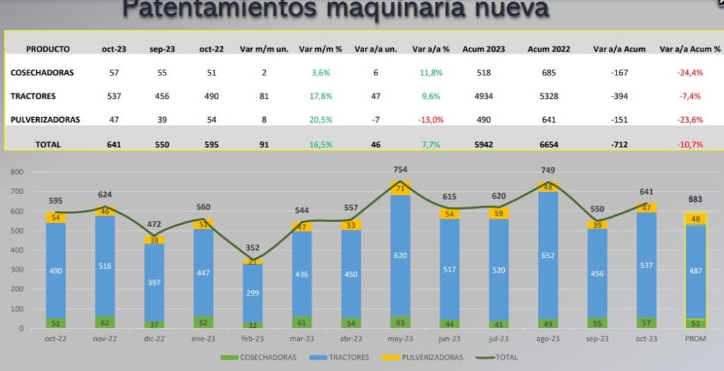En el mismo mes del año pasado, se habían registrado 595 máquinas. Y si la comparativa es con el mes previo, los números también son favorables, con un incremento del 7,7%, ya que en septiembre ya se habían anotado 550 unidades.