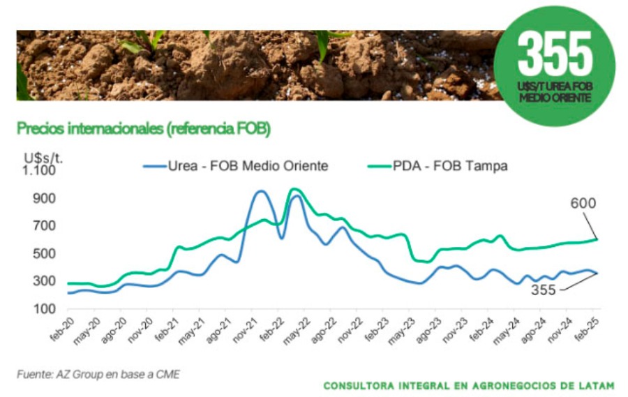 En este escenario, el valor de la urea jugará un papel fundamental en muchos productores que invierten en tecnología aplicada, apostando a buenos rendimientos, como los registrados en la última campaña. Y es que, según datos aportados por la consultora AZ Group, su valor ha subido considerablemente entre enero y febrero, en torno al 11%, llegando a un precio de retiro de 545 dólares la tonelada.