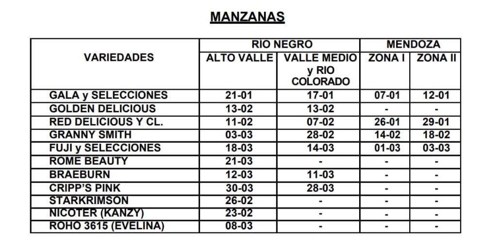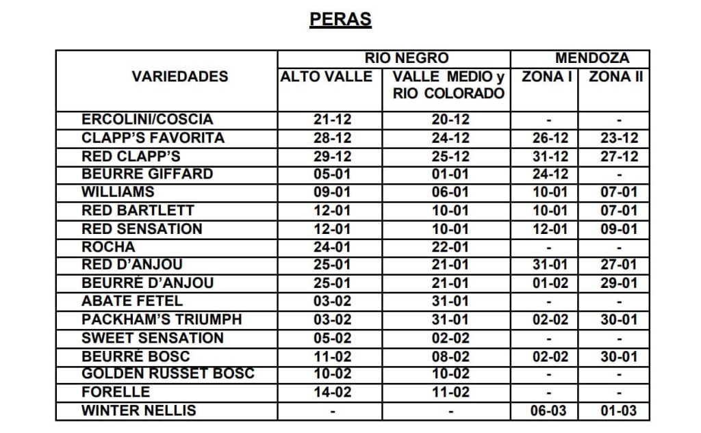 Si bien los trabajos comenzaron a fines de diciembre con algunas variedades de peras en el Alto Valle, SENASA estableció el calendario completo.