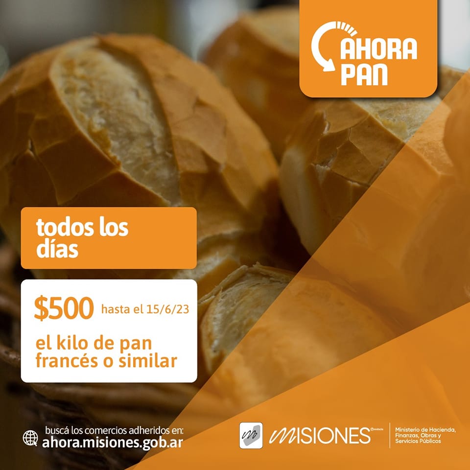 Tras una serie de reuniones con empresarios panaderos de la provincia de Misiones, se acordó actualizar las condiciones del Programa Ahora Pan, hasta el 15 de Junio seguirá vigente con un precio máximo de 500 pesos por kilo de pan francés o similar.