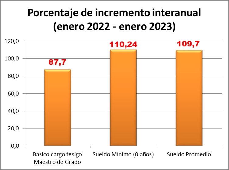 Todo esto, teniendo en cuenta que, en un proceso que va de Febrero 2022 a Enero 2023, el aumento interanual del salario de bolsillo del cargo testigo maestro de grado logró superar el 110 % de incremento.