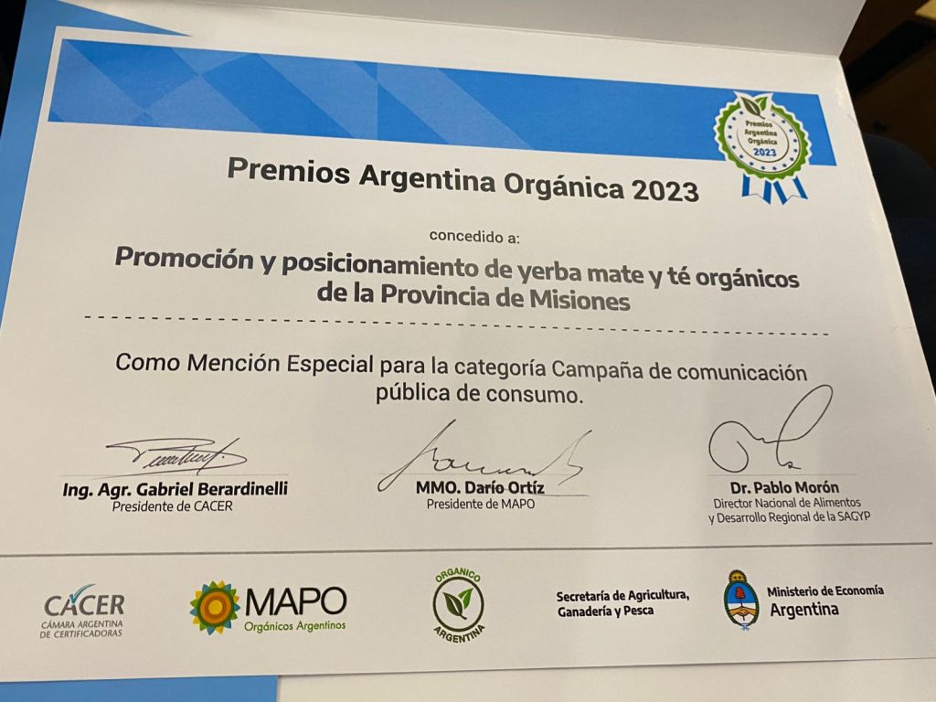 Cabe señalar que es el primer año que se otorgan estos premios y Misiones fue la única provincia premiada, destacando la producción orgánica como política pública. Con la participación de todos los eslabones de la cadena orgánica, desde producción primaria, elaboradores, certificadoras, comercios, entre otros, se presentaron 12 categorías de premios y 9 menciones especiales.