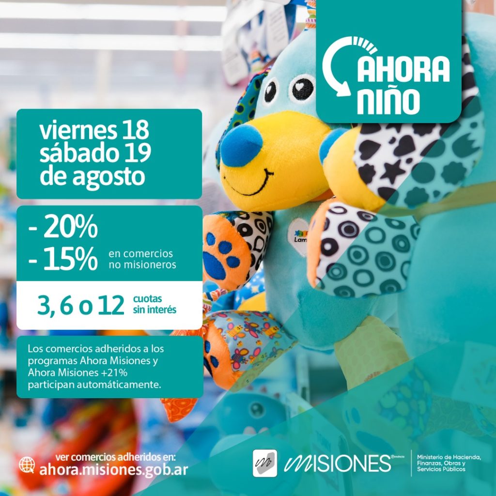 Los rubros comerciales incluidos en Ahora Niño son jugueterías, indumentaria infantil, zapaterías de niños, librerías, artículos de deportes, artículos de informática, ópticas, regalos, perfumerías y relojerías. Los comercios inscriptos en alguna de estas actividades que actualmente están adheridos a los programas Ahora Misiones o Ahora Misiones +21% participarán automáticamente en este programa especial.