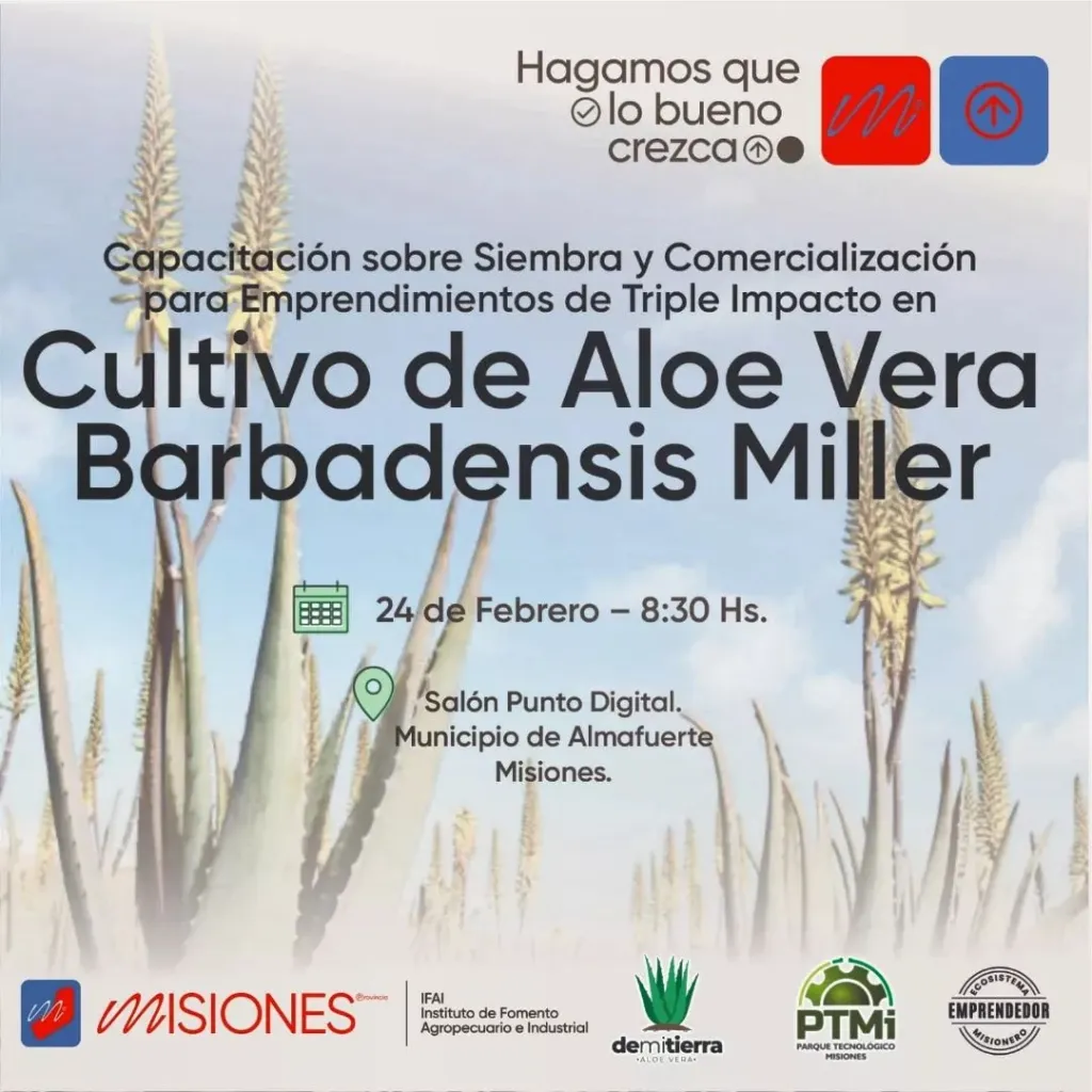 En este sentido, dictarán talleres de capacitación sobre Siembra y Comercialización de sábila para un emprendimiento de Triple Impacto a través del “Cultivo de Aloe Vera” en Misiones.