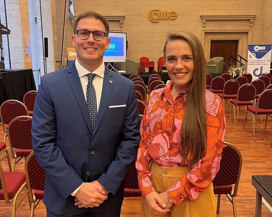 “De Ushuaia a Misiones” fue el eslogan bajo el cual la misionera Noel Paredes estuvo moderando el evento del Premio Joven Empresario Argentino junto al fueguino Nicolás Oliva.