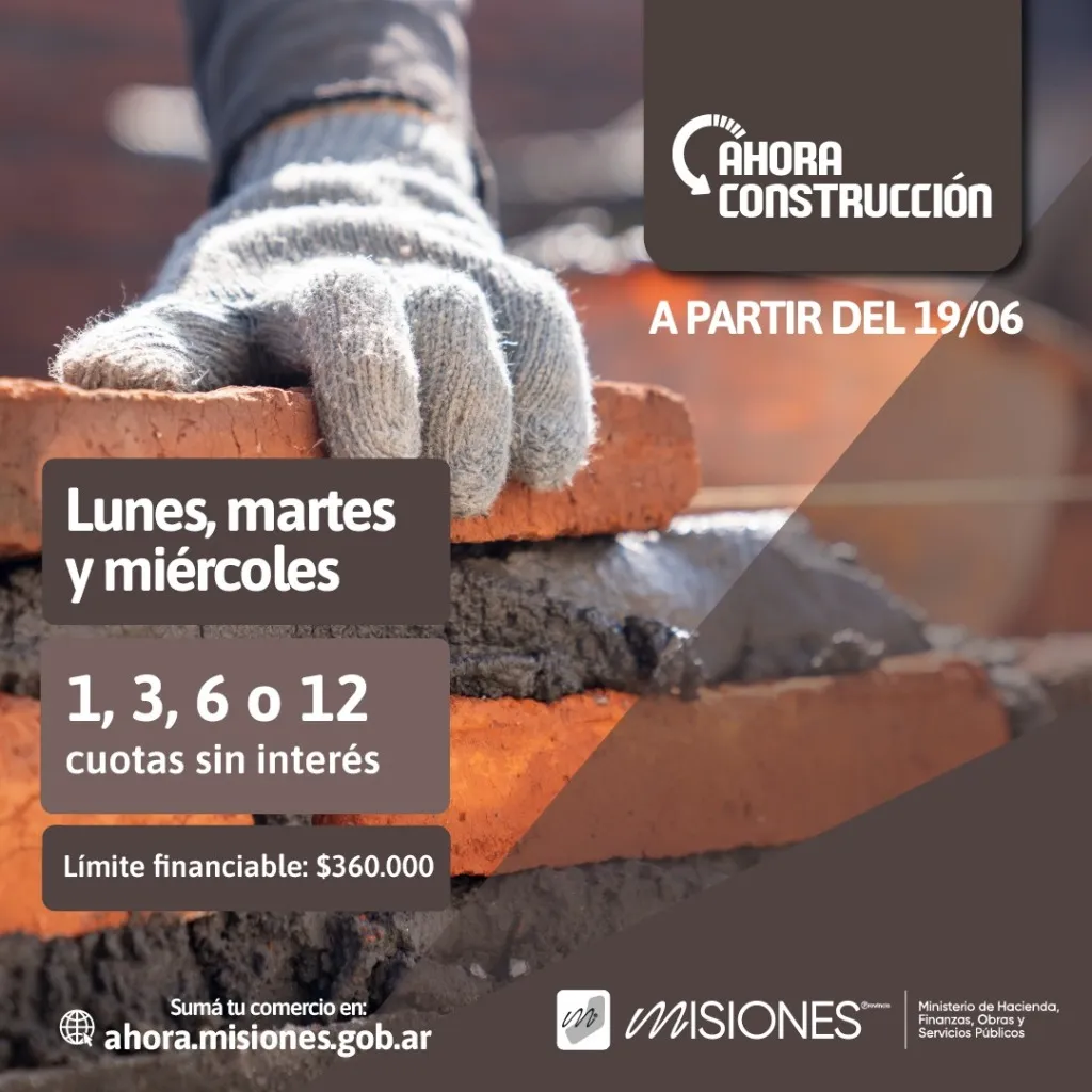El lunes entró en vigencia el Programa Provincial Ahora Construcción, anunciado por el Gobernador de la provincia de Misiones, Oscar Herrera Ahuad a mediados del mes pasado. El programa contempla la compra de materiales hasta 12 cuotas sin interés con tarjetas de crédito del Banco Macro. El beneficio regirá hasta el 31 de diciembre durante los días lunes, martes y miércoles. “Elegimos unirnos a este programa para incrementar nuestras ventas con las herramientas que se otorgan a los clientes”, destacó el propietario de la ferretería Apolo Martín Ortíz.