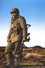 "Esta foto que le saqué en las Malvinas al cabo de la Fuerza Aérea Hugo ferreyra se hizo más que viral. Se convirtió en la imagen-símbolo del combatiente en Malvinas", explicó Kasanzew.