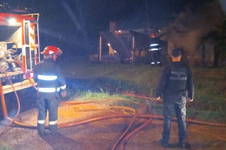 La Policía de la provincia de Misiones intervino en un incendio registrado esta madrugada en el Barrio Tealera de la localidad de Dos de Mayo, donde una vivienda resultó totalmente consumida por las llamas.