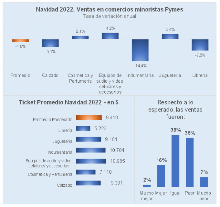 Las ventas navideñas en los comercios minoristas PyMEs bajaron 1,8% frente al año pasado, a precios constantes.