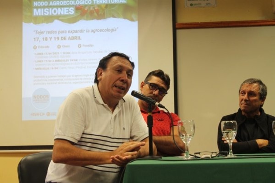 El Vicepresidente del Instituto Nacional de la Yerba Mate (INYM), Ricardo Maciel, participó este lunes 17 de abril en el lanzamiento de Nodos Agroecológico Territorial "Tejer redes para expandir la Agroecología", que se efectuó en la Facultad de Ciencias Forestales de la ciudad misionera de Eldorado.