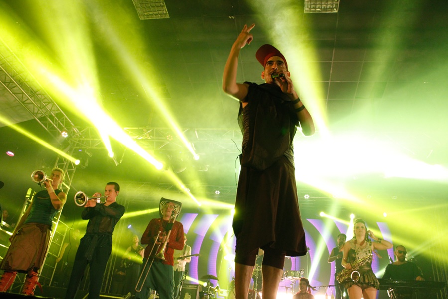 Los siete vientos se plantaron al frente para elevar el sonido que se escuchó en todo el barrio Villa Urquiza por la fuerza de las trompetas, saxos, trombones, y el clarinete, con los vocalistas que iban rotando en el medio. Desde atrás, sobre una plataforma elevada, fueron respaldados por la solidez de los instrumentos percusivos (bongo, caja vallenata, timbal, güira, y congas), junto al teclado, guitarra y bajo. “Por Una Vez en la Vida” fue la canción elegida para dar inicio al show, con el guitarrista Manuel Cibrián en voz, mientras los asistentes se aproximaban al escenario y se dejaban llevar dentro de una sabrosa marea de baile grupal.
