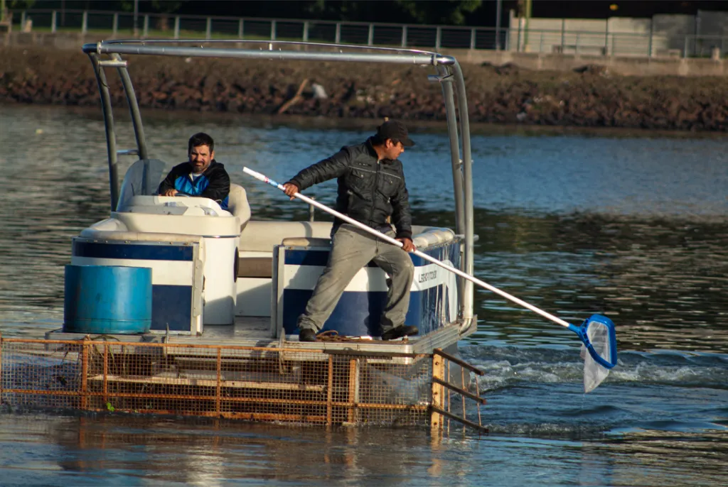 Como parte del plan de contingencia, con respaldo de los clubes, diariamente limpian las aguas de El Brete