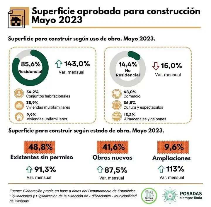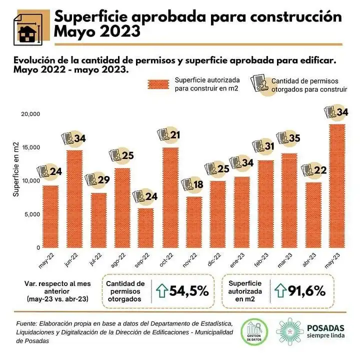El informe de la Oficina Municipal de Gestión de Datos revela un incremento significativo en la entrega de certificados de permisos de obra durante mayo de 2023 en comparación con meses anteriores y el mismo período del año pasado. Tanto en términos de número de certificados como de superficie autorizada, se registró un aumento notable. El sector residencial fue el principal beneficiario de estos permisos, lo que refleja la alta demanda en el mercado inmobiliario de la ciudad de Posadas.