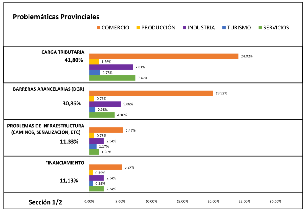 En el ámbito provincial, el panorama es el mismo que desde hacer un año: la carga tributaria sigue siendo la principal dificultad para las empresas y, en comparación a meses anteriores, profundiza su brecha respecto de otras problemáticas que más afectan en el día a día en la provincia de Misiones.