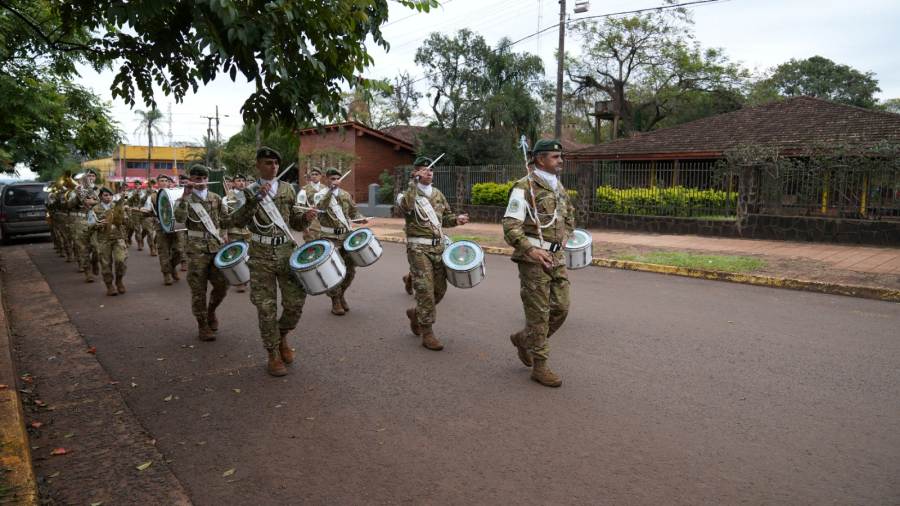 En el marco del Día de la Escarapela, integrantes del gabinete municipal junto a la Banda del Regimiento de Infantería de Monte 30, personal de la Brigada de Manejo del fuego y vecinos que se sumaron a la actividad, se repartió escarapelas en el centro de la ciudad misionera de Apóstoles, para que sean usadas durante la semana de Mayo.