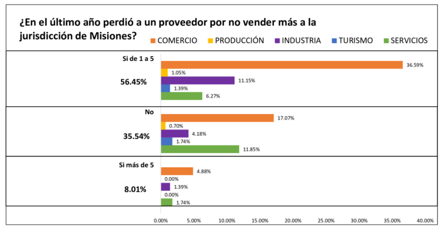 Entre ellos, se destaca que más del 64% de los encuestados considera que perdió un proveedor durante el último año debido a la decisión de no vender más en la jurisdicción de la provincia de Misiones.